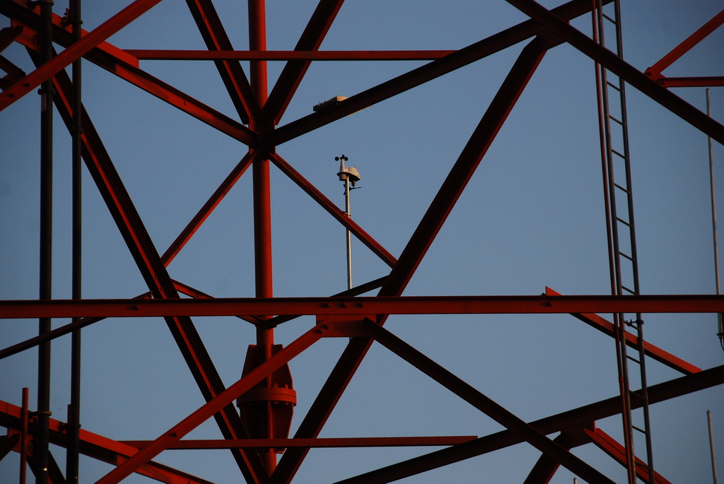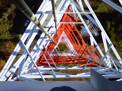 face of the tower. An aluminum grating was place over it to deflect the ice that falls from the upper parts of the tower.